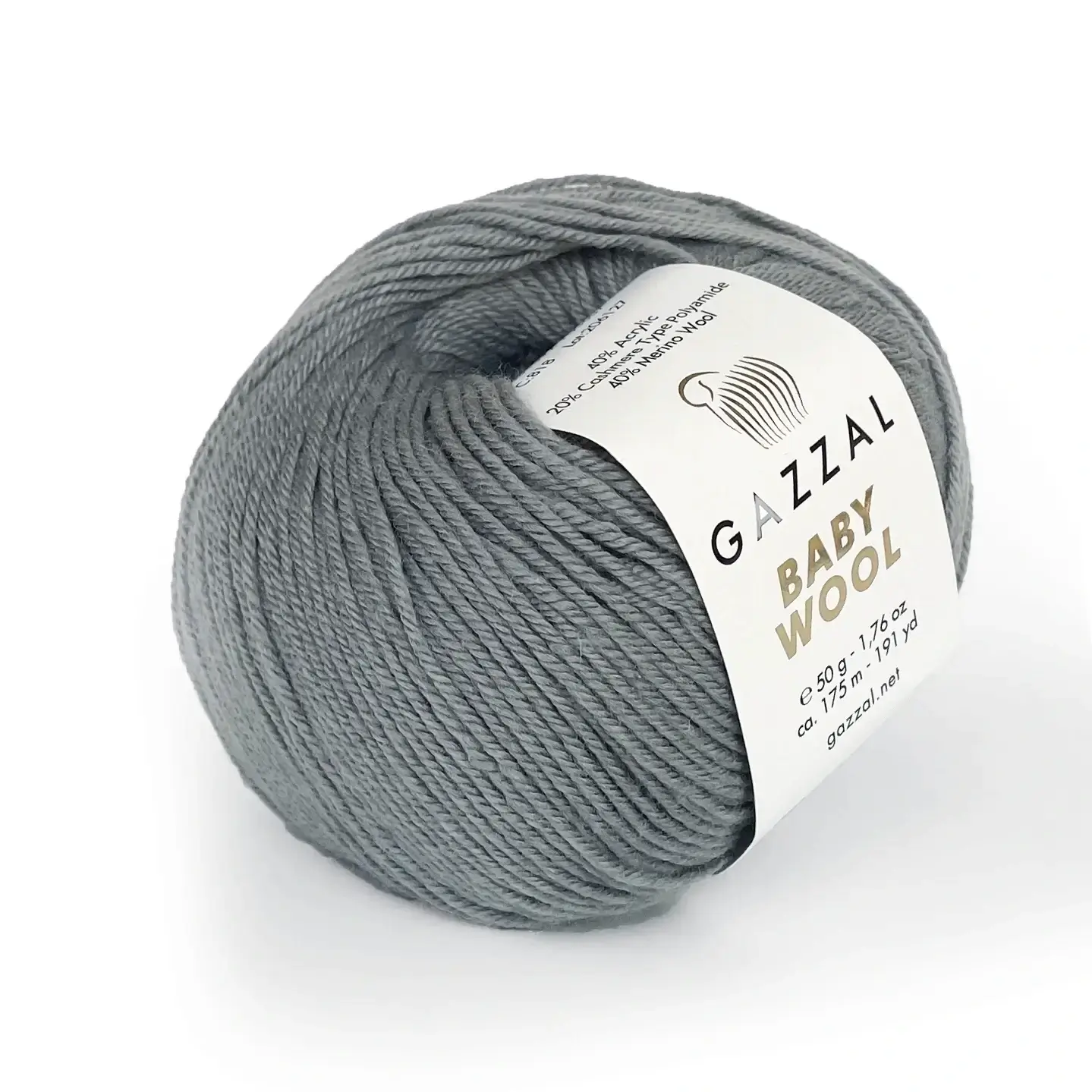 Пряжа Gazzal Baby Wool 818 — сіра напіввовна з мериносом для дітей і дорослих