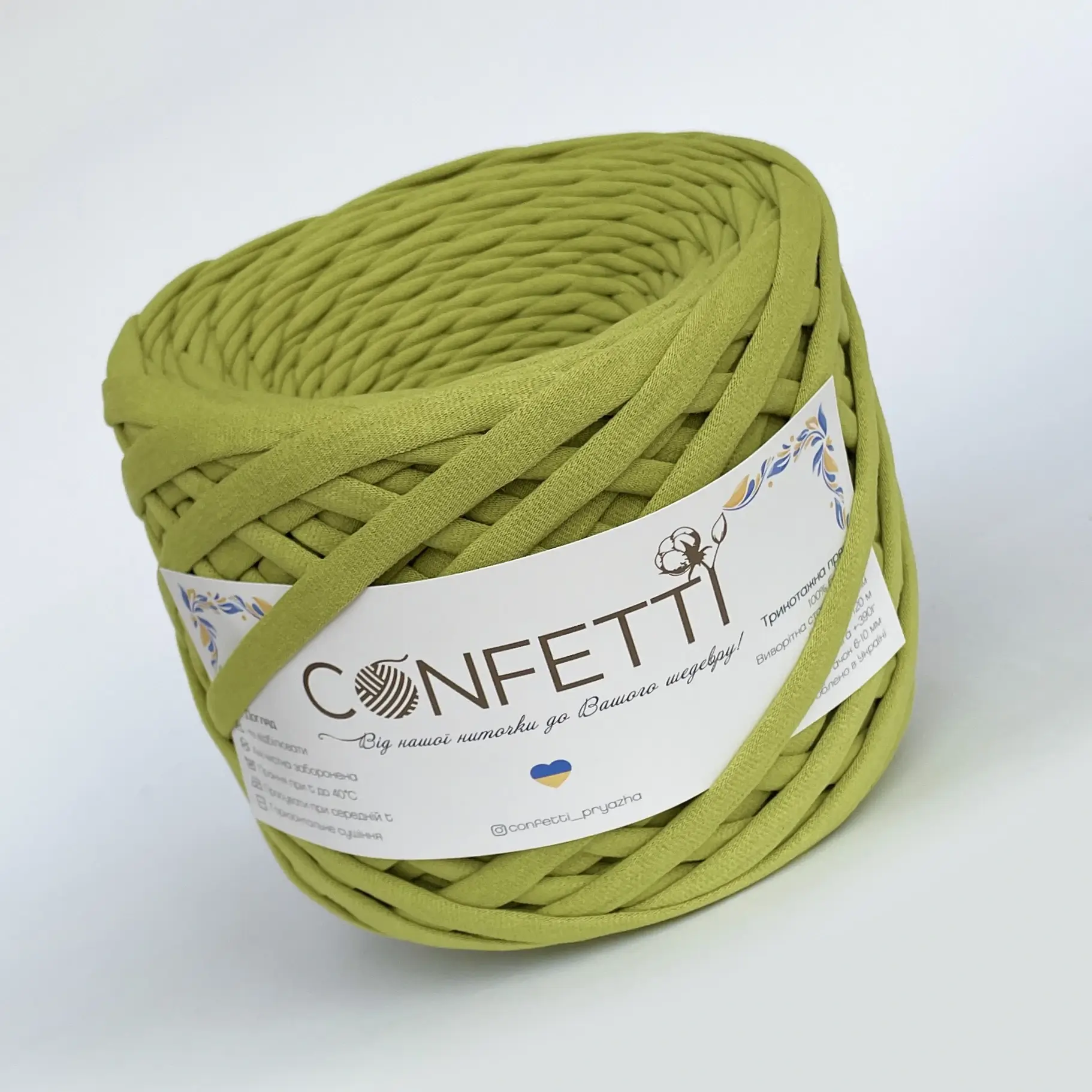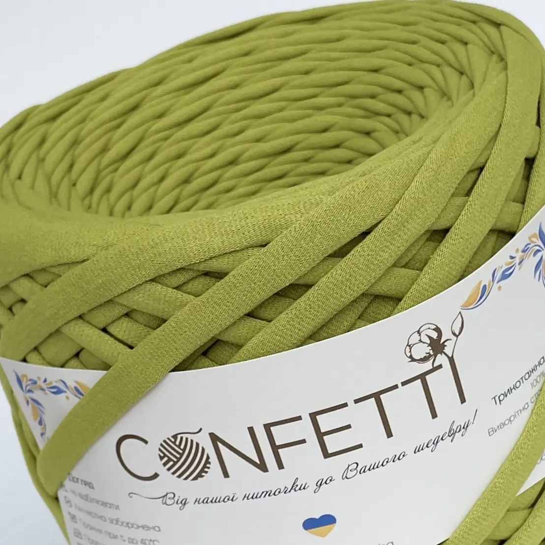 Confetti салат Трикотажна пряжа 7–9 мм у ніжному салатовому кольорі — це високоякісний матеріал для ручної роботи, який стане в нагоді як початківцям, так і досвідченим майстриням. Завдяки ширині нитки 7–9 мм, пряжа ідеально підходить для створення стильних аксесуарів, виробів для дому, подарунків та декору. Якщо ви шукаєте, де купити трикотажну пряжу в Києві, зверніть увагу на Confetti — українського виробника, який пропонує якість за приємною ціною.